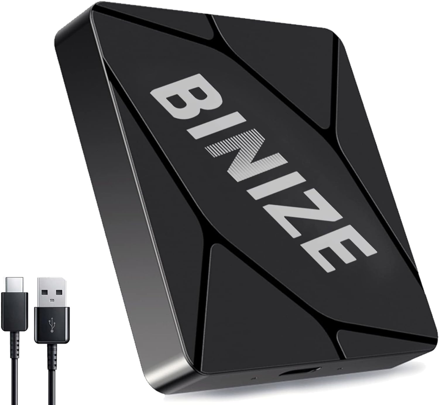 Binize Wirelss Carplay Adapter, Carplay Wireless Dongle for Factory Wired CarPlay Cars to Convert Wired to Wireless, Plug&Play, Latest BT 5.2, Fast WiFi 5.8GHz, USB/Type-C 2Cables
