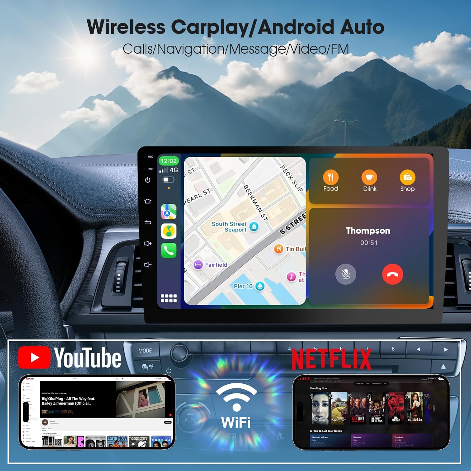 - 【64GB Storage & APK Flexibility】Expandable storage for apps, music, and videos, compatible with CarPlay and Android Auto. Install third-party APKs for personalized functionality.