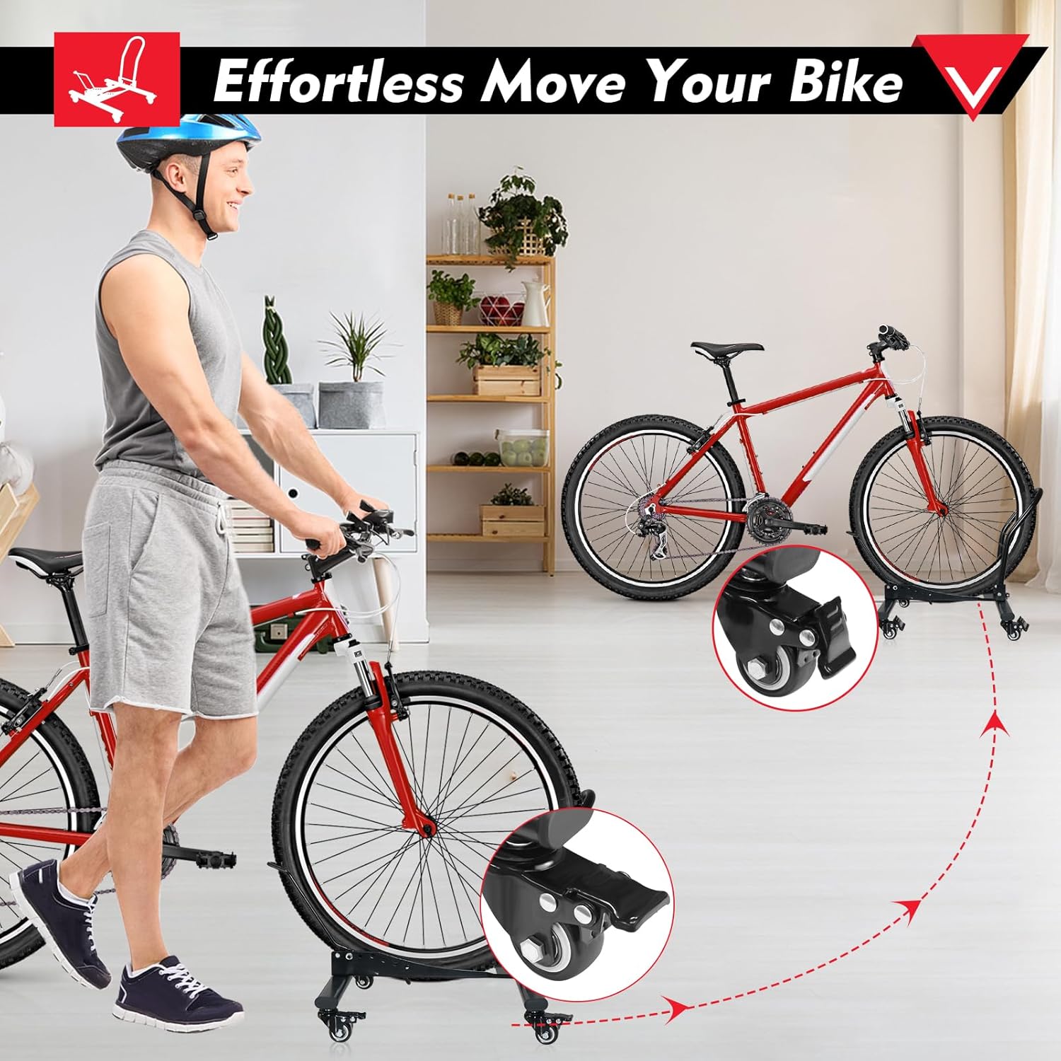 - Lockable Rolling Wheels:4 lockable 360° wheels transform this bike storage rack into portable bike stand. Move between garage/apartment then lock as stable floor bike stand. Combines indoor bike rack mobility with fixed-ground security